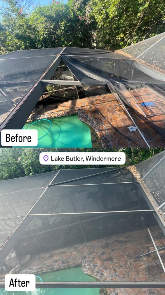 Screen torn? Pool & patio rescreen in Orlando+60 miles